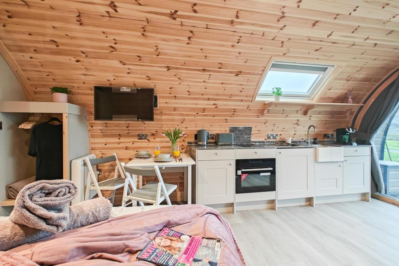 The lodge is equipped with 1 bedroom, a kitchen with an oven, and 1 bathroom. Towels and bed linen are provided in the lodge.