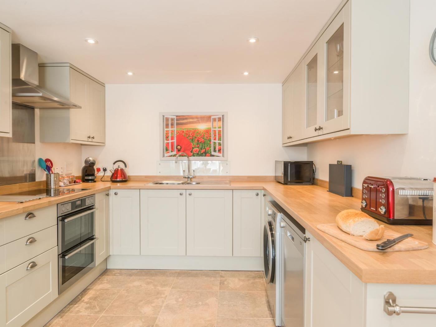 Holiday Home. The fireplace is the standout feature of this holiday home. This holiday home features 2 bedrooms, a seating area with a sofa and 1 bathroom with a shower. Meals can be prepared in the kitchen, which features a stovetop, a refrigerator, a dishwasher and an oven. The holiday home features a washing machine, a tea and coffee maker, a dining area, a wardrobe and a TV. The unit has 3 beds.