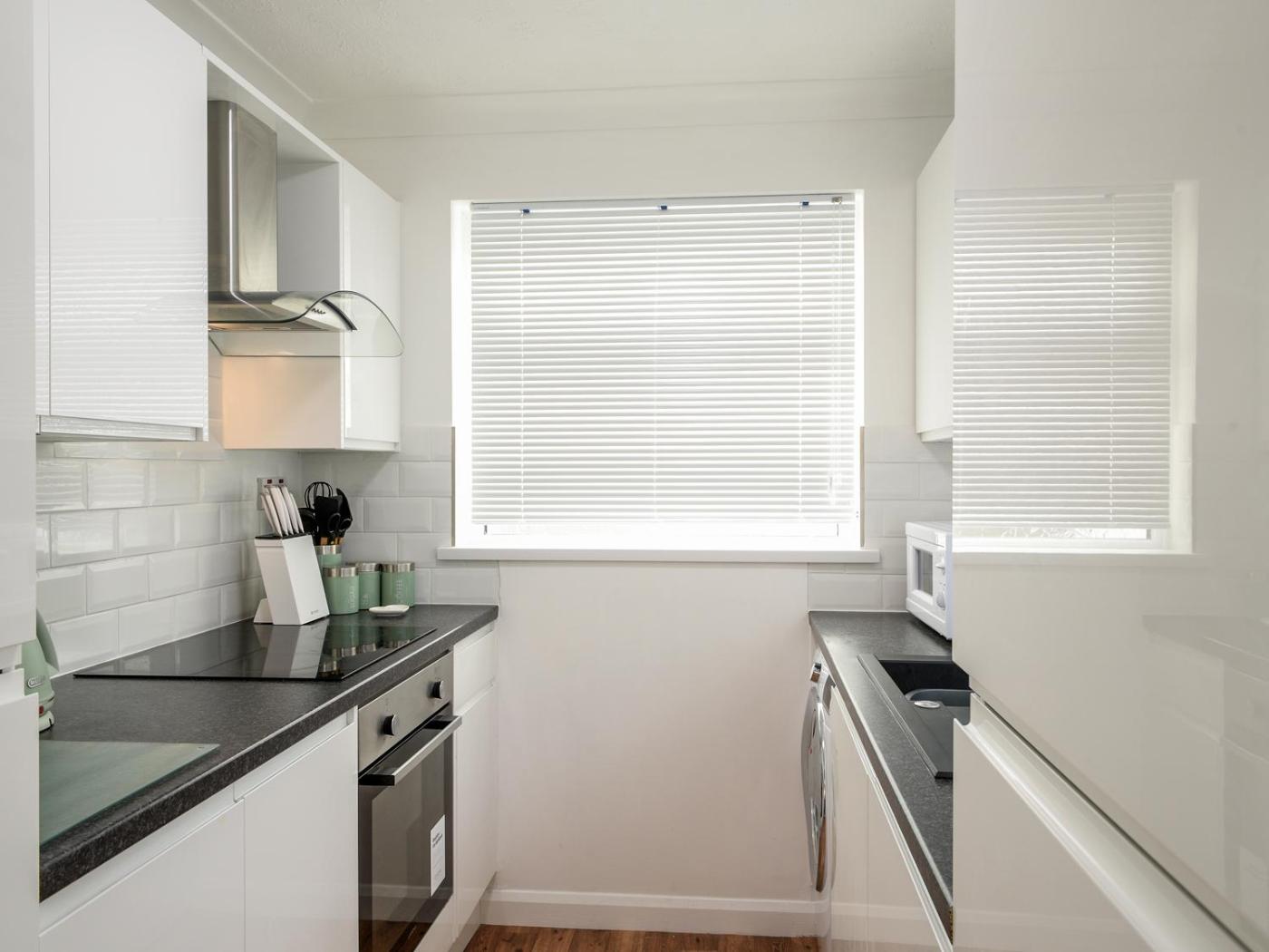 The holiday home has 2 bedrooms, a TV, a fully equipped kitchen with an oven and a microwave, a washing machine, and 1 bathroom with a shower.
