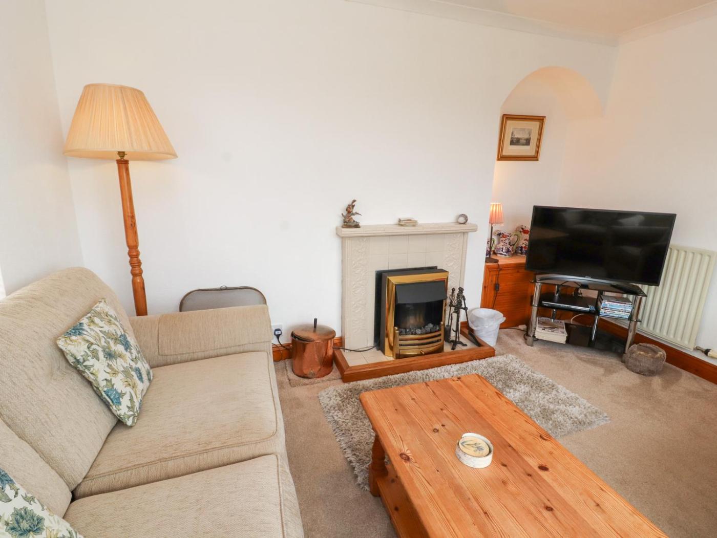Holiday Home. This holiday home features a fireplace. This holiday home features 2 bedrooms, a seating area with a sofa and 1 bathroom with a shower. The well-fitted kitchen has a stovetop, a refrigerator, an oven and a microwave. The holiday home features a washing machine, a dining area, a wardrobe, heating and a TV. The unit has 3 beds.